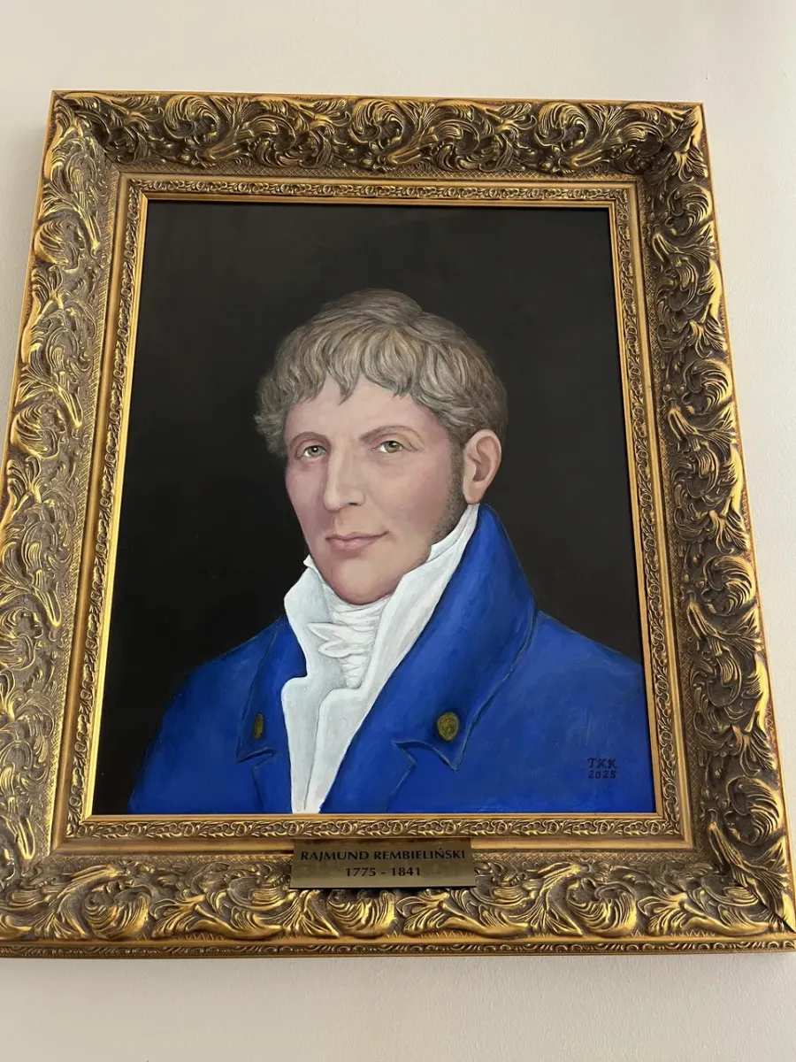 Uczciliśmy 250-lecie urodzin Rajmunda Hiacynta-Jacka Rembielińskiego herbu Lubicz, ojca i założyciela przemysłowej Łodzi, wizjonera i menedżera przemysłu w Królestwie Polskim. Nasza nadworna malarka Teresa Kamińska – Kaszuba namalowała wdzięczny portret przystojnego młodego człowieka, a odsłonięcia dokonał jego pra-potomek prof. Jakub Rembieliński, kierownik Katedry Fizyki Teoretycznej w Uniwersytecie Łódzkim. Profesor zwiedził nasze Muzeum Księży Młyn i opowiadał o dziejach wielce zasłużonej rodziny Rembielińskich. Portret Rajmunda wisi na honorowym miejscu i wita gości muzealnych, ciekawych historii naszego miasta. Dla zainteresowanych poszerzeniem wiedzy o dokonaniach naszego bohatera odsyłamy na platformę YT i nasz kanał Muzeum Księży Młyn. Tam 8-odcinkowa historia o życiu i dziele Rajmunda Rembielińskiego, opracowana na podstawie książki profesora Krzysztofa Pawła Woźniaka – Rajmund Rembieliński, Wizjoner i menedżer Łodzi przemysłowej, Raporty z lat 1824 – 1830.